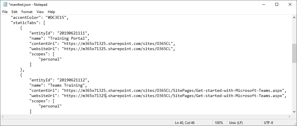 Update the manifest.json file and replace the target URL’s to match your Learning pathway site URL. Make any other adjustments you feel necessary and save the file.